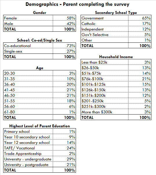 I’m currently undertaking a qualitative study into the determinants of parental school choice.  The study comprises 22 semi-structured exploratory interviews of Australian parents,  principally from Melbourne with some from regional Victoria.  Parents come from diverse backgrounds of educational history, educational choice of school type, and cultural.